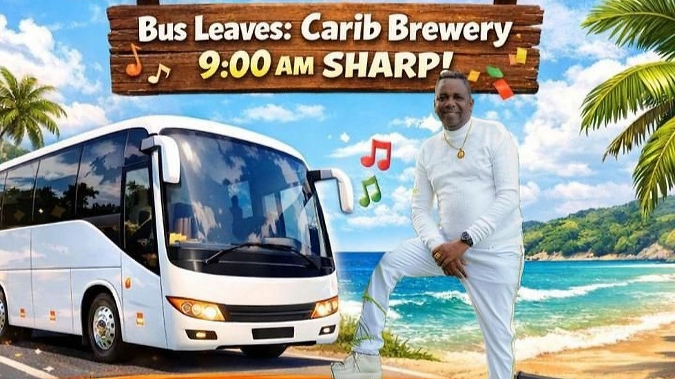 The event takes place on Sunday 21st June, with the bus scheduled to leave Carib Brewery at 9:00 AM sharp. From there, patrons will head to Toco, with music and entertainment continuing throughout the trip.